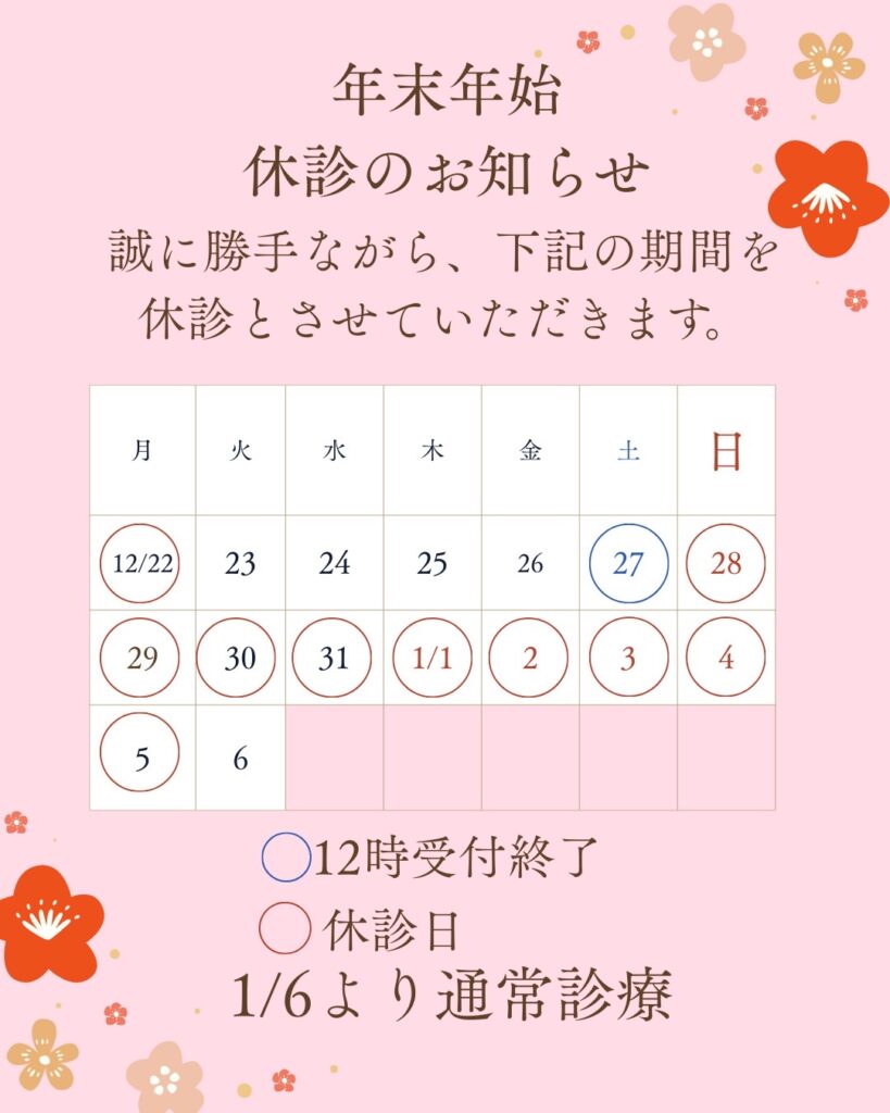 ご迷惑おかけしますが、上記の期間は休診となります。